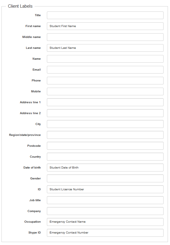 Most businesses use different terminology to describe their services offerings as well as the information they need to collect from their clients. You can tailor the terminology used when referring to resources, services and locations to suit your business type or industry. The terminology can also be set to rename client fields labels to better reflect the information you need to collect when clients make a booking. client fields can be re-purposed if you need to collect specific information. For example a Driving School could change ID to Driving License No